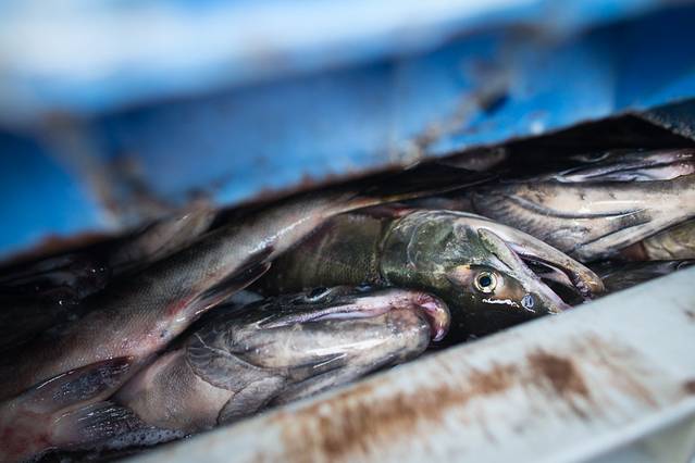 除了鲑鱼,有时也会打到金枪鱼,不过数量不多。