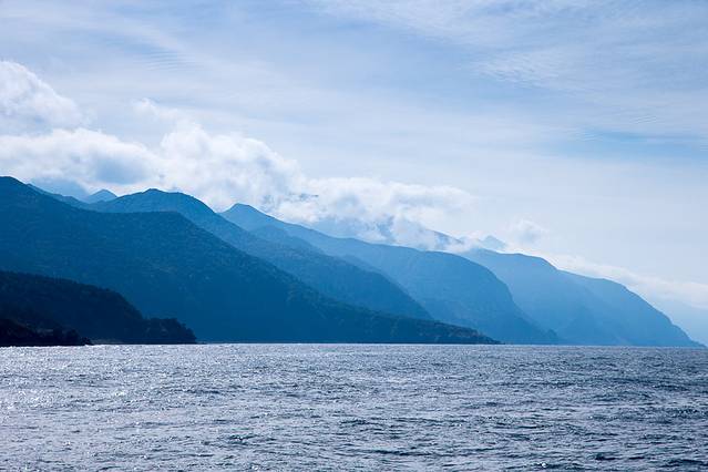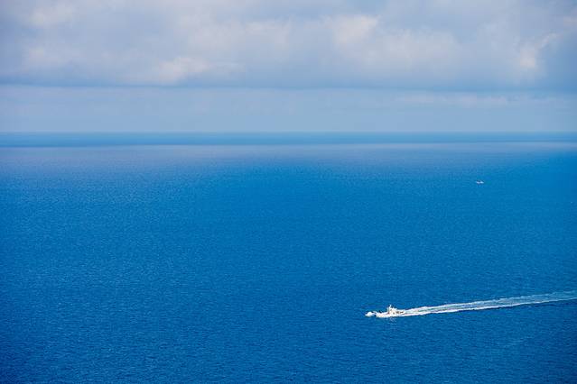 碧蓝的鄂霍次克海和天空,我们在知床险峻的峭壁边乘船前进。在北海道,有一种蓝色被称为鄂霍次克蓝。