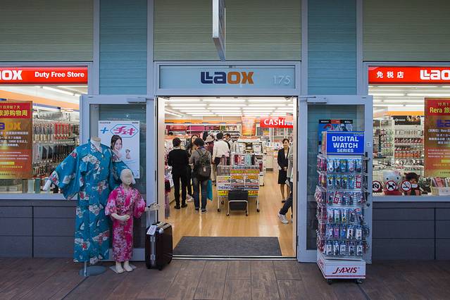 乐购仕(LAOX)是日本最大的连锁综合免税店,包括电器之类的商品基本都有的卖。分别在东京、大阪、福冈、长崎和冲绳设有门面店,在北海道除了千岁的奥特莱斯,札幌市和新千岁机场也有。而且在日本买的乐购仕电器回国内的乐购仕可以联保。