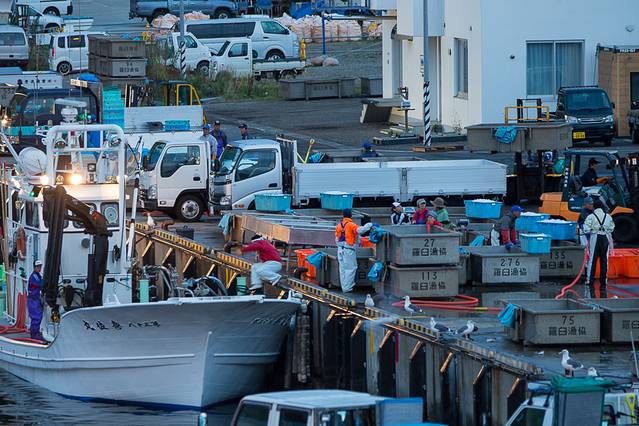 早上5点多钟,渔港已经是相当繁忙,出港和归港的渔船来来往往。