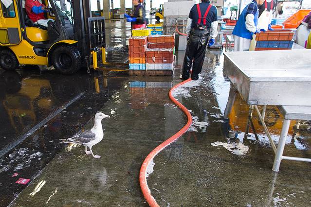 来到海港,我们准备登船前往知床半岛与国后岛之间的海域观鲸,在码头发现两只鬼鬼祟祟的小偷。渔港总会招来海鸥、乌鸦这些喜欢坐享其成的家伙。