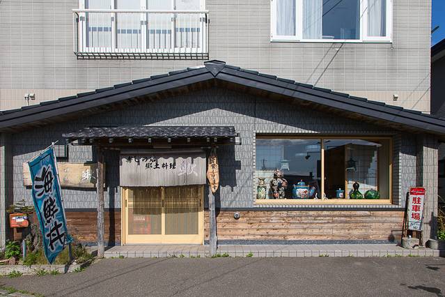 “乡土料理鳅”的外观。地址位于罗臼公路服务站(观光案内所)附近。