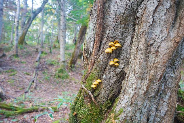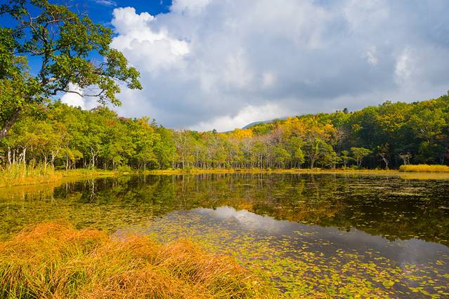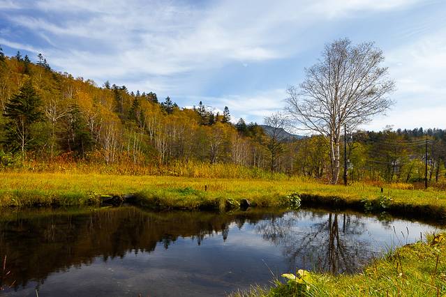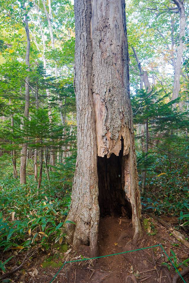林中小景。林中分布着冷杉、白桦、柞树、枫树、花楸等各种北方树木组成的原生林,还有很多珍稀的湿地与高山植物等。运气好还会看到啄木鸟、野鸭、花栗鼠等小动物。喜欢博物旅行,喜欢生态和自然的童鞋值得花上大半天时间泡在里面。但如果在里面发现熊,则知床五湖立刻会疏散游客,采取封闭措施。