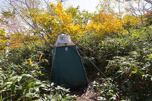 徒步路线上设置的简易厕所,使用后要自己把排泄物带走,在后藤小妹的装备里还有与这个简易厕所搭配使用的,用来装排泄物的容器,我们没去厕所,所以没看到容器是什么样子的,在这里建议参与户外徒步之前先提前解决好内务。。。要不怎么都不太方便。