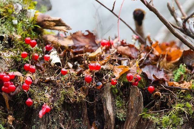 旭岳温泉地区有几条可以林中徒步的路线,直接走到森林深处,有湿地和森林景观,还有机会遇到鼠兔、山雀和啄木鸟等野鸟,不过由于雨后路面非常湿滑,我们没有把所有的路线全部走完,但是林中能看到很多高山植物,这个季节很多植物的浆果都熟了。