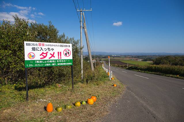 路边摆着刚刚收获的南瓜,千岁其实也是丘陵地带,以农业为主,其实有着和美瑛富良野一样的风景,而且离札幌还很近。租个自行车,转悠一天,晚上就可以返回札幌。