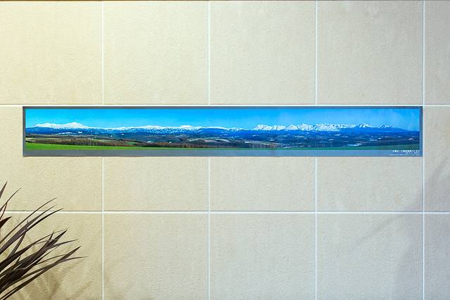 酒店四处都挂着很多旭川地区的风景与自然照片。这张接片完整的把大雪山系和十胜山系呈现出来,这个拍摄地点在旭川市郊,下回再去要找到这里。