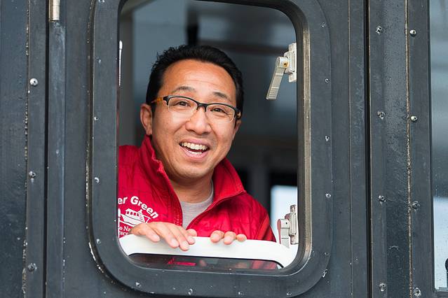 年轻有为的田中帅哥,罗臼地区规模最大的渔业公司之一的少当家,忙里偷闲给我们展示刚刚打上来的鲑儿。