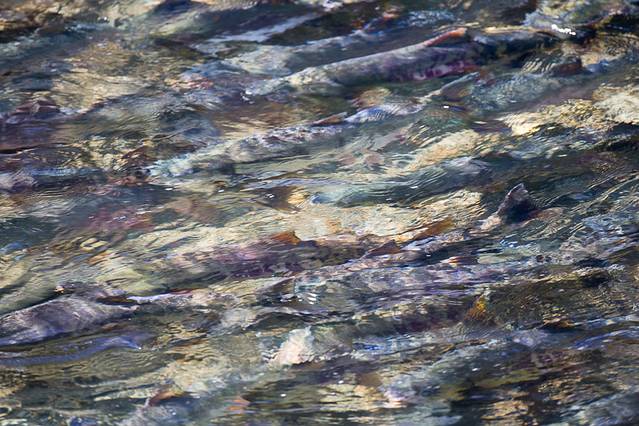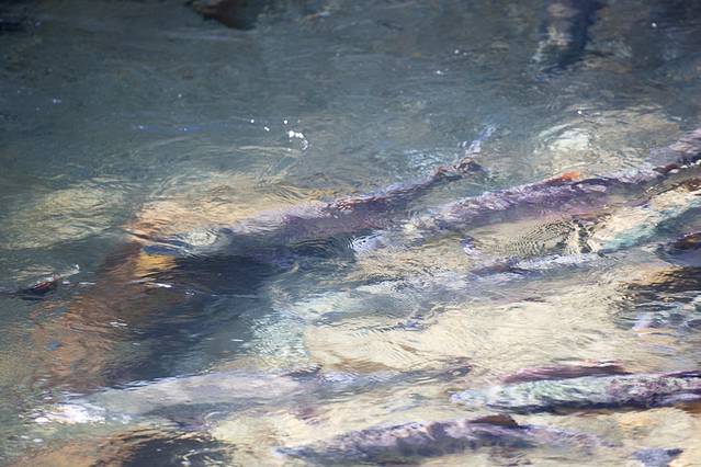 宇登吕的河流中,鲑鱼正在成群的洄游。