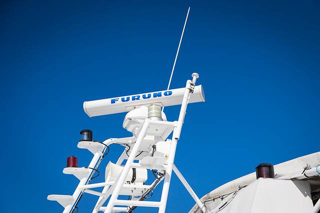 这就是我们乘坐的观鲸船,我们和另一艘观鲸船同时出发,船上配备了先进的声纳设备,可以听到“鲸歌”,确认鲸鱼的位置。