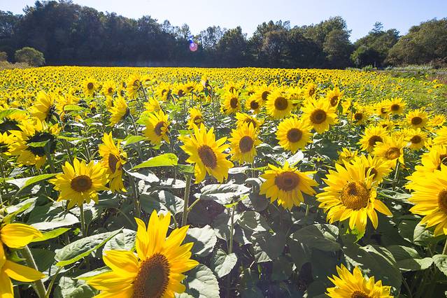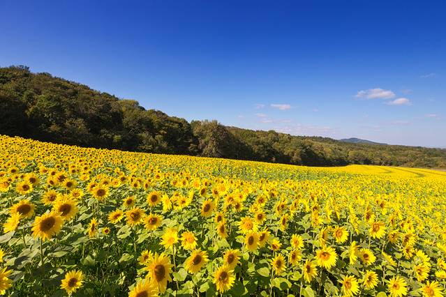我们在千岁观光联盟的指引下找到了这片向日葵田,真的是大出我们所料,也许因为机场和购物中心的关系,千岁别的魅力都被掩盖了,以往都是北龙或名寄的向日葵知名,而且通常8月末花期就过了,10月的这个时候北海道依然能看到大片的向日葵,就在千岁,我们经常错过的千岁,这回是来值了。千岁的向日葵不是用来结葵花子的,而是一种花期较晚的品种,用来给土地催肥用的。花开完直接就烂在地里,冬天过后,土地就变得更肥沃了。