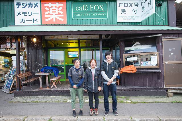 一群年轻人创业的游览船公司,办公室里还有咖啡店,我们聊得挺投机,给他们拍了几张照片,他们的船叫FOX号,是小型船,到知床岬的航线人均8000日元,在此推荐一下,地点就在宇登吕港旁边。