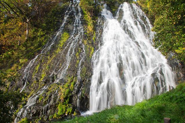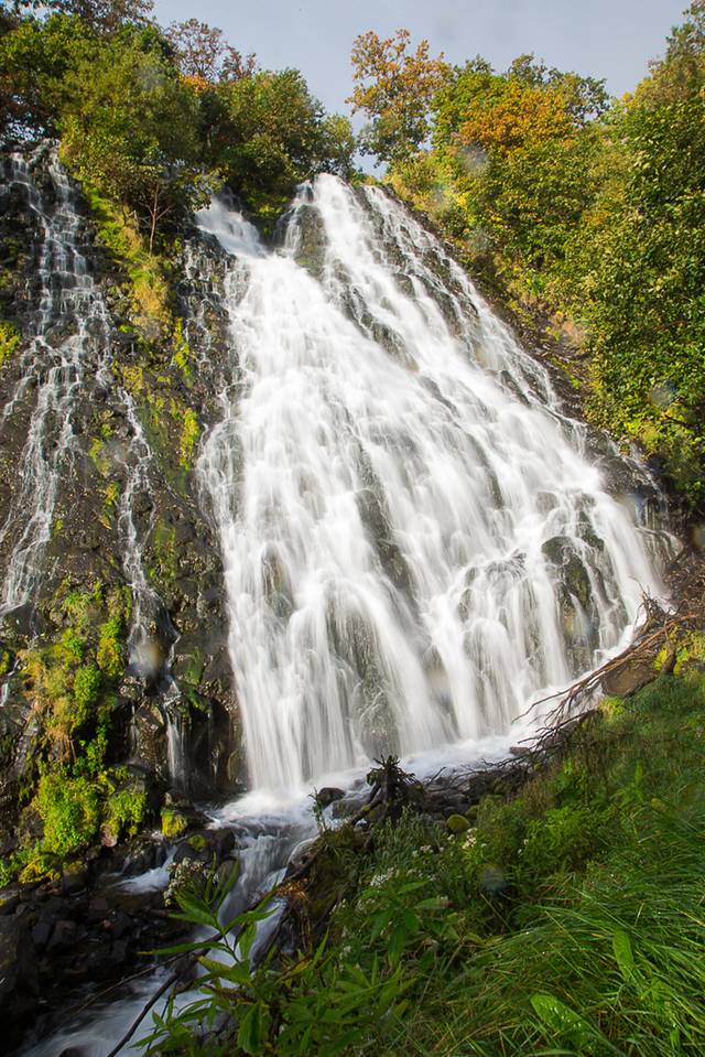 下午从五湖出来后我们又回到了宇登吕附近,知床八景之一的另一个瀑布,双美瀑布。顾名思义:两道瀑布从山上流下,线条比较柔美。