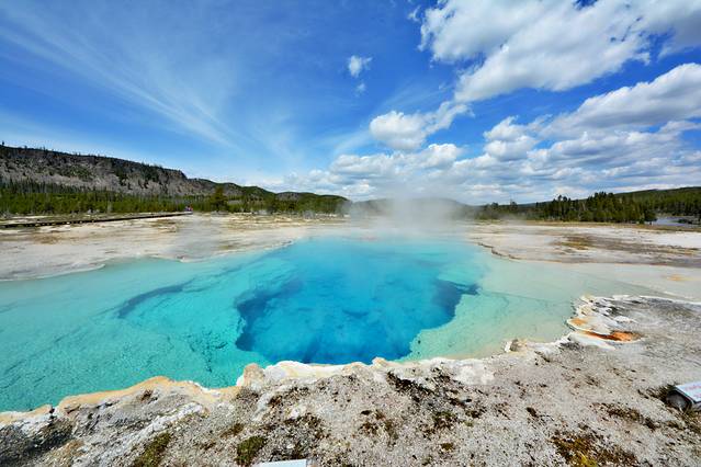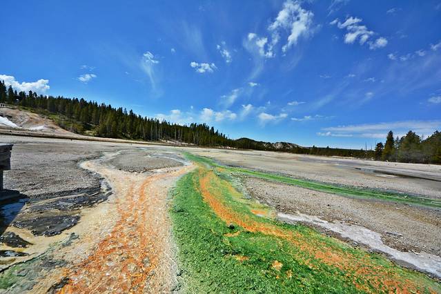 尽量把诺里斯间歇泉放在最早游览。有两个好处,一是它色彩不那么浓烈徒步路程也不长,可以作为开胃菜,二是因为诺里斯间歇泉是黄石最热的地方,大中午会本蒸腾的热气和硫磺的味道弄的不太舒适,一早去则会凉爽许多。