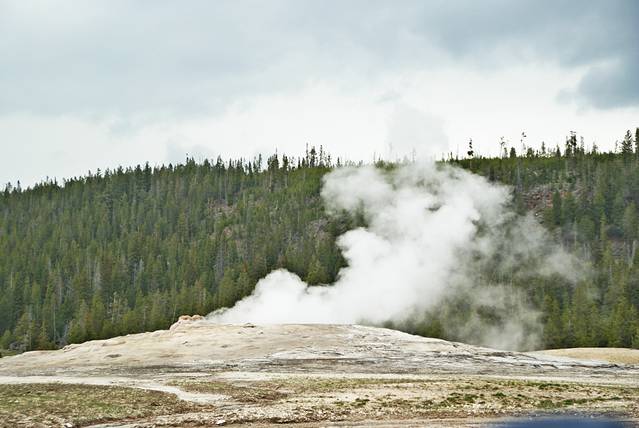 大名鼎鼎的 Old Faithful,老忠实泉的喷发大概是90分钟一次,具体时间可以在游客中心门口的黑板上看到,如果不希望等待太久,可以记住喷发时间然后先在附近的饼干泉旁边玩。老忠实泉,顾名思义,就是又老又忠实的间歇喷泉。听到这个名字,有没有若有所思?小伙子们,来这求婚吧!不要太浪漫哦!其实old faithful这一块除了老忠实泉必须到此一游外,围绕老忠实的那条长长的trail也非常值得深入游览。一般小伙伴们都会匆匆观赏完老忠实的喷发后就奔赴下一景点,并没注意这个trail包括了好多美丽的彩池和别的热泉,像著名的牵牛花池morning glory。至于其他的热泉,虽然没有老忠实有名,但是有的比老忠实还壮观,譬如全球最高的可预测间歇泉Grand Geyser。还好我们有最后一天查漏补缺,才没有错过这个超级赞的trail。