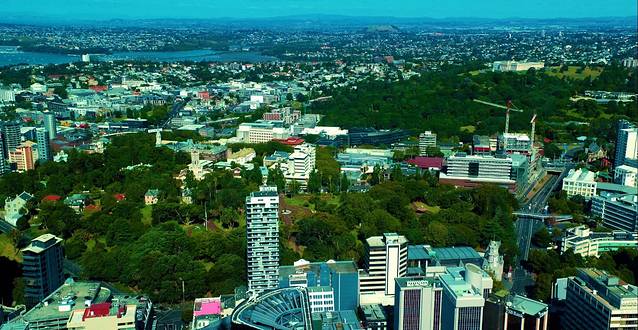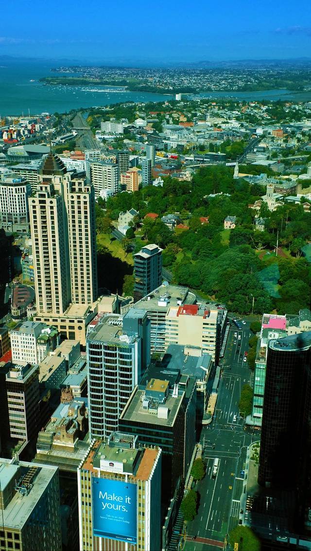 上到塔顶,躲开眼前仅有的几栋高层建筑,整个奥克兰就在塔外铺展开来。眼前的奥克兰,在海水的冲击下显得支离破碎,许多海湾远远的伸进了内陆,在一座座死火山之间蜿蜒前行,城市则在海湾与火山的空隙间奋力生长,大桥将被海水冲散的土地连接起来,似乎是在努力的使城市看起来更完整。城市虽生长得局促,却还是非常慷慨的留出了大片空地,在里面布置了公园、大学和博物馆。这样,城市看起来是确确实实的被自然环抱着了。也就无需再去定义那里是原本的自然,那里是后来的城市了。