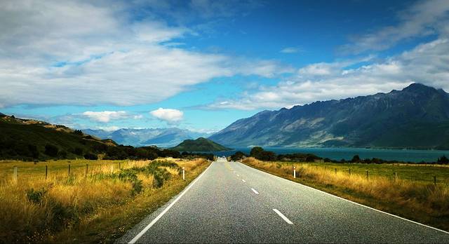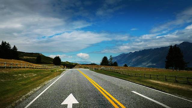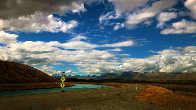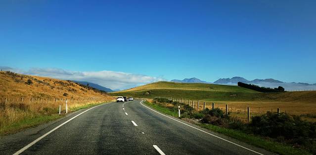 第一次看见新西兰的高速公路一定都会不相信。高速公路几乎全是两车道,没有护栏(只有局部三条道以供超车)高速公路全程限速100,在进入城镇会限速80-50,山区弯道一般85-65。来之前看到有些攻略写说“南岛路况不及北岛”,其实路况都一样,只是南岛多山,开不快,一般一小时的车程会花1个半到两个小时。在南岛开长途的都要给自己多预留一点时间。