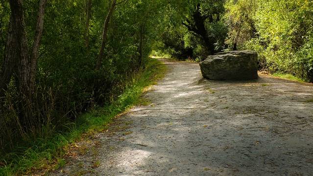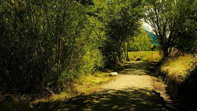 出门右转,略显沮丧的我走上了一条蜿蜒在山脚的小径。小径平行于主路,绕过镇上的主要建筑,在经过高尔夫球场后又回到了当初我们下车的地方。小径平行于主路
