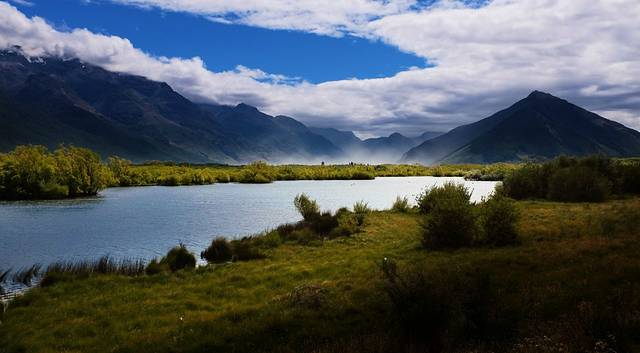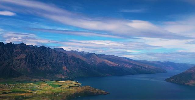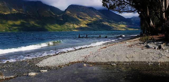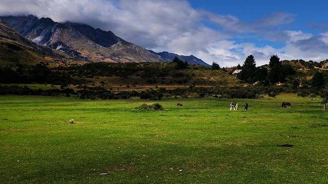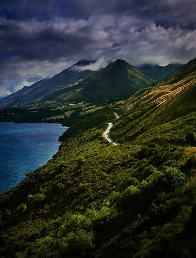 格林诺奇位于瓦卡蒂普湖的北端,距离皇后镇68公里,车程40分钟左右。之前这里因为美景而吸引游客,最重要的是吸引到了“彼得大帝”的目光,现在这里越来越多的户外活动吸引了除魔戒迷以外更多的游客。这里沿途的美景丝毫不逊色于小镇中心。灰色的公路沿着湖岸东南陡峭的山脉起伏,两侧的树木飞快的划过窗外,把湖面深邃的蓝剪成一片一片。翻上一座山头,破碎的蓝全都被洒在脚下山谷里,被雨过天晴的微风吹皱。