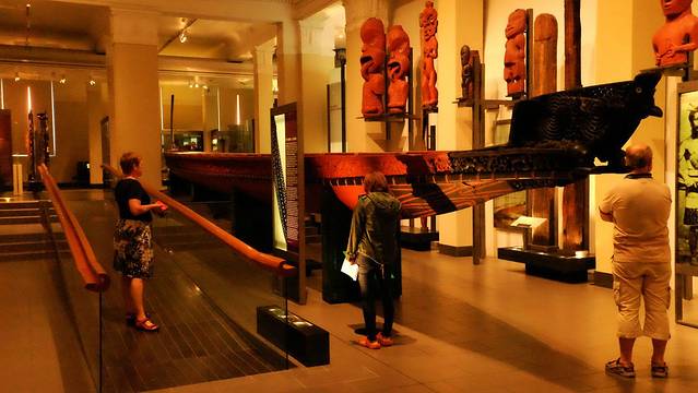 博物馆是一座类似林肯纪念堂的白色三层新古典风格建筑,顶部装饰着彩色玻璃的铜顶兴建于2007年。博物馆主要以展示新西兰当地的风土人情和自然历史之用。大楼一层全面展示了新西兰本土的毛利人以及汤加,斐济等南太平洋岛国的原住民的工艺品。大厅中引人注目的展品包括了一艘25米长的毛利战船和一间典型的毛利会议室,会议室内布满了精美的雕刻,进入前需要先脱鞋。