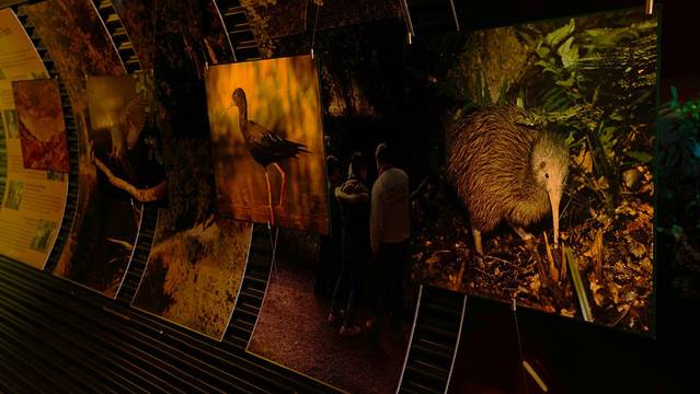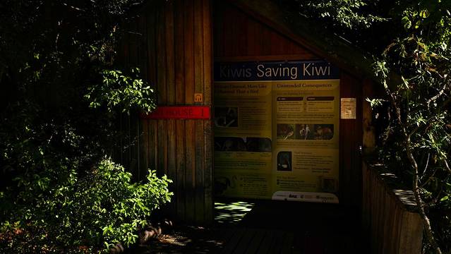 在几位鸟公园里共有两座小木屋饲养着几维鸟。因为几维鸟是夜行性动物,所以小屋里都只开着昏暗的红灯,才进去的游客需要至少5分钟来适应光线的变化。之后就能看见在玻璃围栏里走动的几维鸟了。几维鸟身长只有35厘米,这可是大大的小于我的预期。完全就像一个棕色的毛球在里面滚来滚去。每天的上午10点和12点, 下午的1点30和4点30都有时长为15分钟的喂食时间。工作人员会在游客都安坐在椅子上之后开始为大家讲解关于几维鸟的一些小常识,并且在围栏里投放它们爱吃的食物,引诱他们走出巢穴,以便游客观赏。有兴趣的游客在来之前可以提前算好时间。