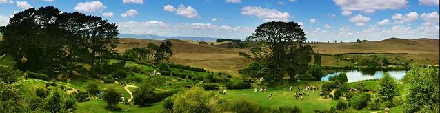 距离哈比屯最近的城镇是玛塔玛塔,来此参观的人可以在镇上乘坐旅游大巴去往哈比屯,也可以自己开车到“Shire’s Rest”。到了这里就只能乘大巴往里走了。我们选择的是后者。