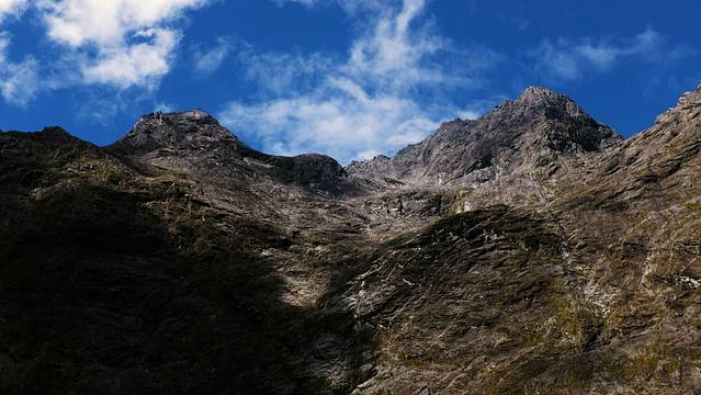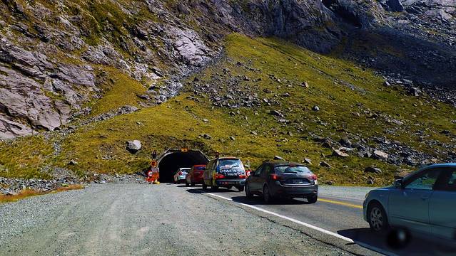 荷马隧道全长1200米,因两侧高耸入云的突兀岩壁而出名。这条隧道仅允许单项通行,传过这条粗糙且渗水的隧道之后,雄伟的克雷道山谷就在眼前了。穿过山谷,米尔福德峡湾那标志性的山峰就出现在眼前了。