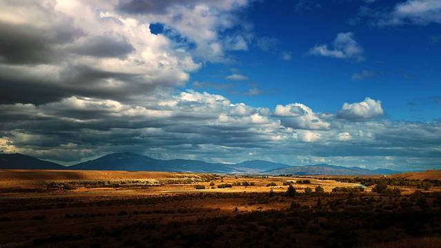 汤加里罗国家公园,位于新西兰北岛中央,建于1887年,是新西兰最早的国家公园。整个公园以三座火山就其周边的森林和荒原为主。其中最著名的火山就是瑙鲁霍伊霍山。瑙鲁霍伊霍山呈圆锥形,山坡陡峭,顶部是直径400米的火山口,是十分典型的圆锥形火山。“指环王”中的末日火山就是以此为原型。不过这天天气阴沉,三座火山全部被乌云覆盖,满眼只见凄凄枯草。这样的景象使人一点都不觉得像是到了“魔多”,倒像是疾驶在“洛汉”的平原。