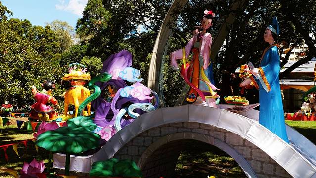 从奥克兰博物馆走回皇后街的路上,又经过了这里。因为元宵灯会的举办这里完全变成了一个中国公园,各种灯会里出现的题材这里都有,提前回国的感觉呀!有木有,你们自己看!