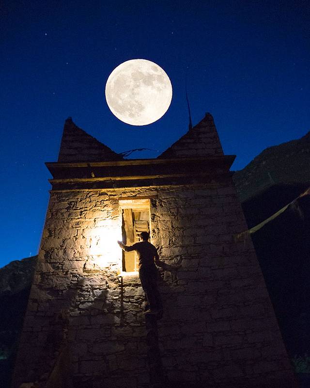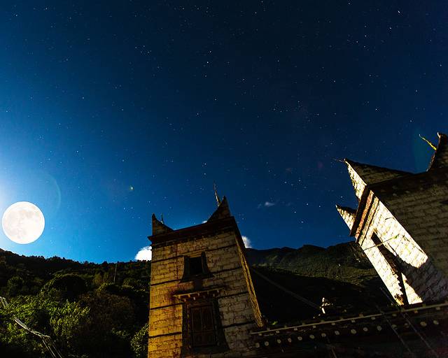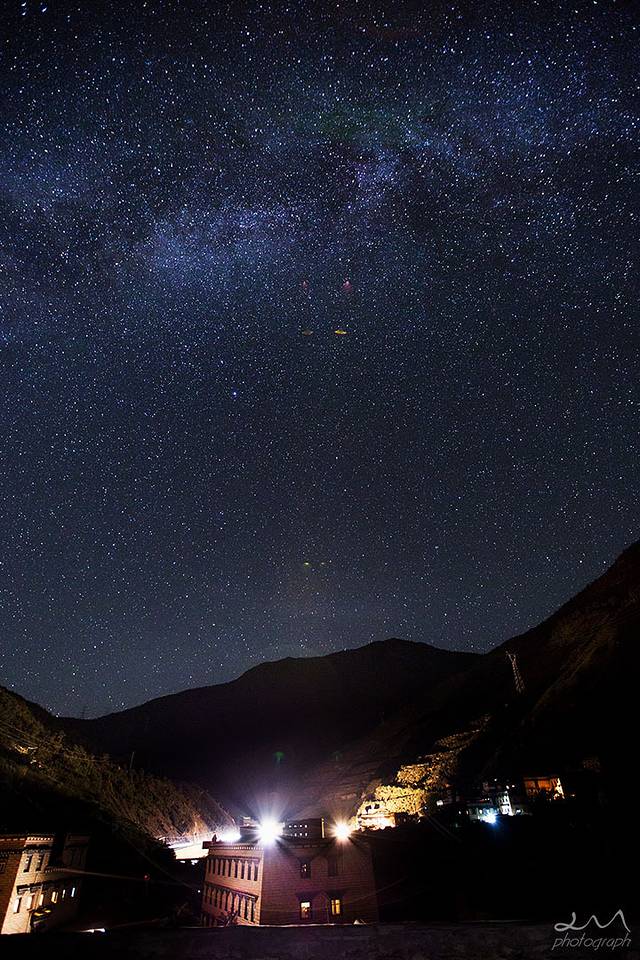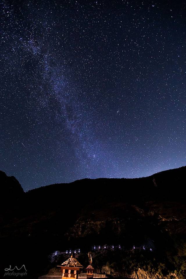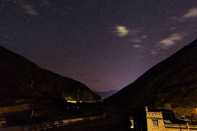 晚上在藏民家楼顶拍星,银河很清晰,但是今晚也是多云,只拍了一会就不行了。