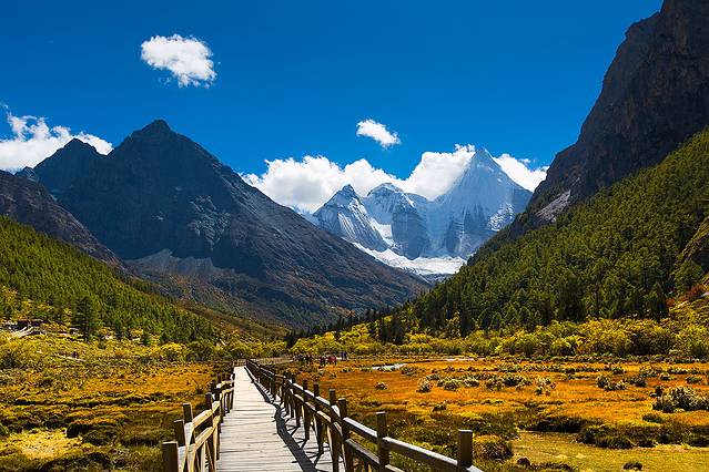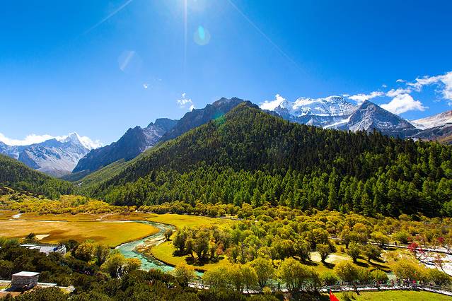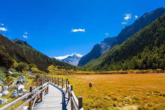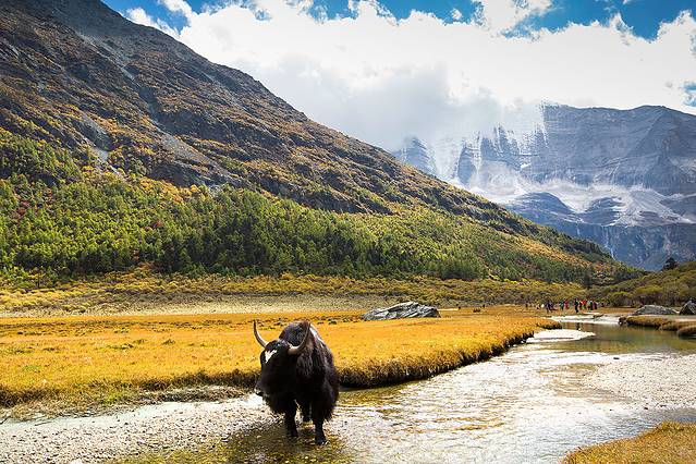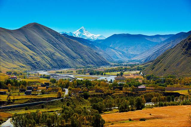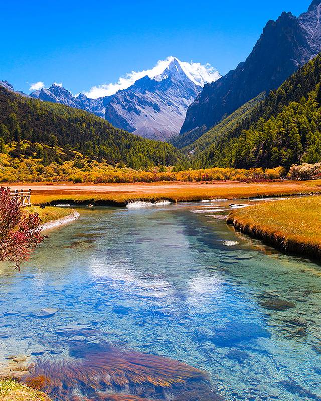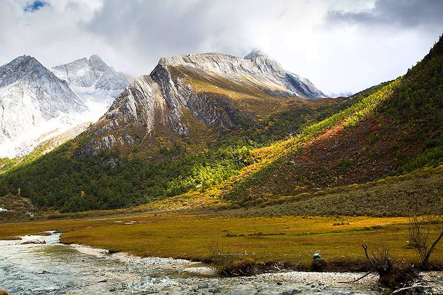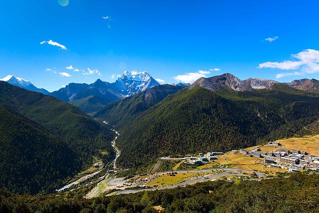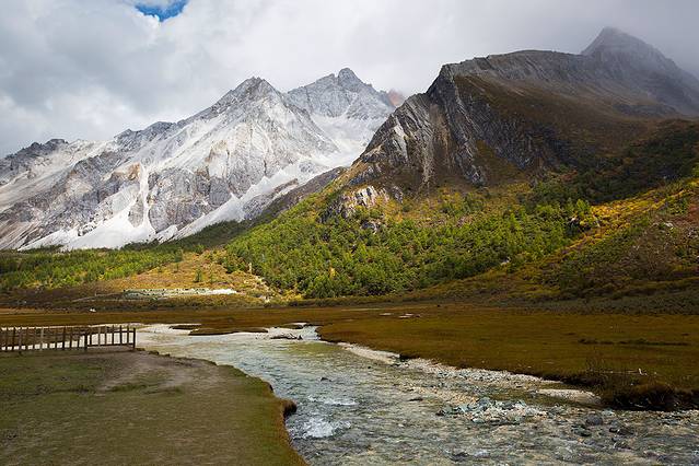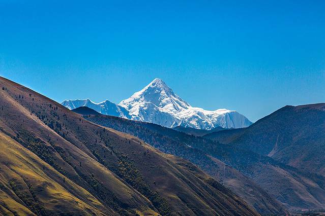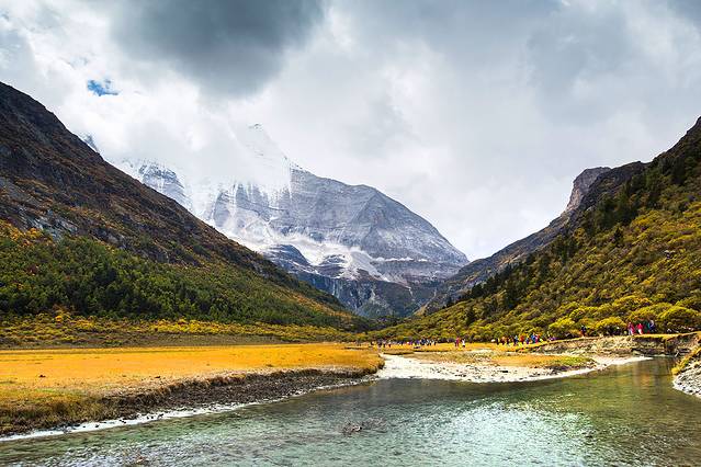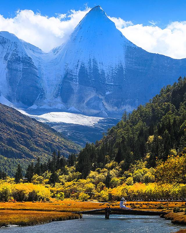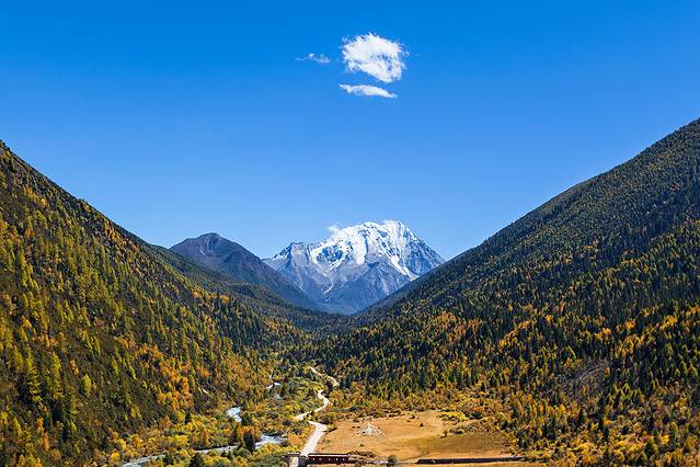 沿着河谷往上,雅拉雪山突然就出现在山谷中,惊艳无比。
