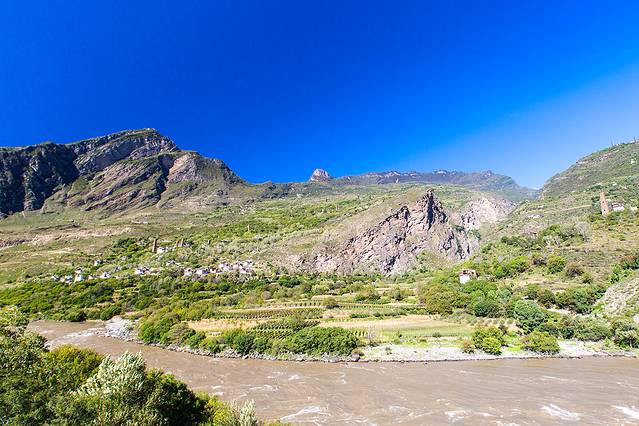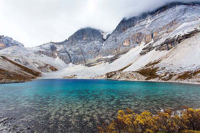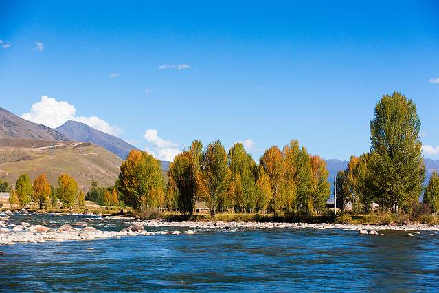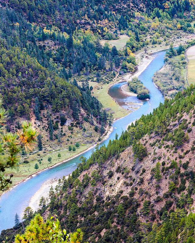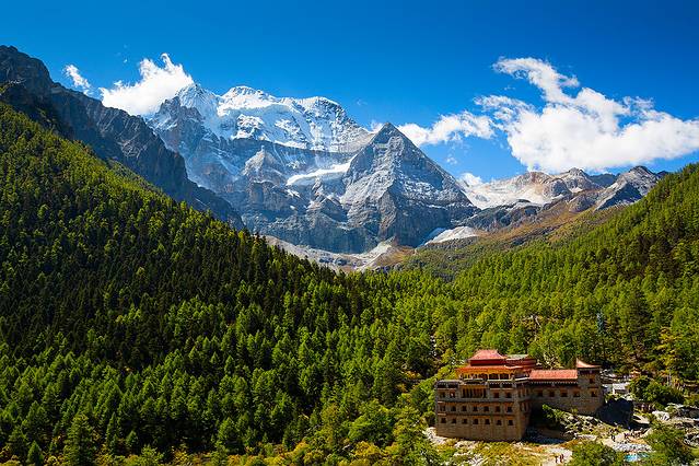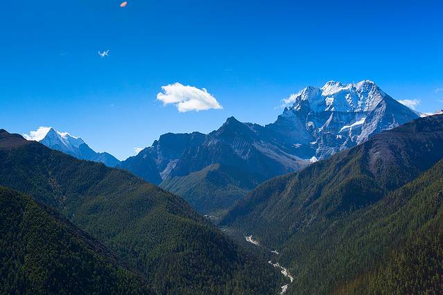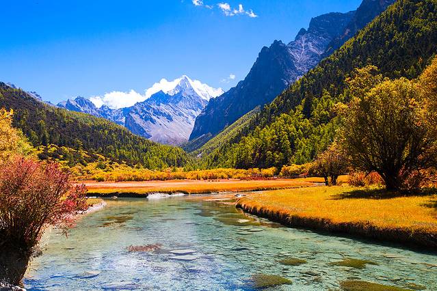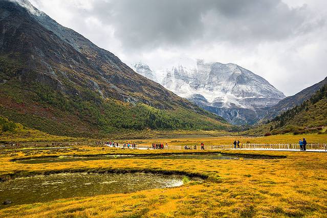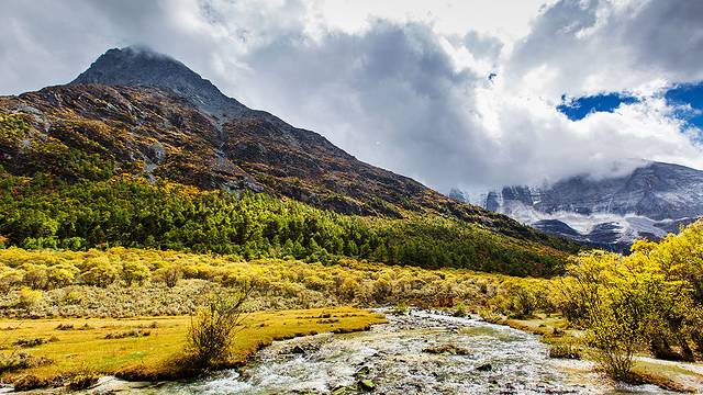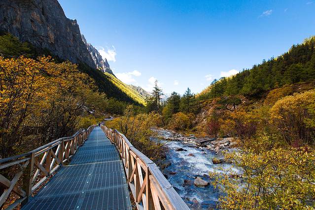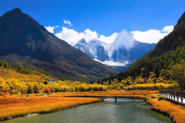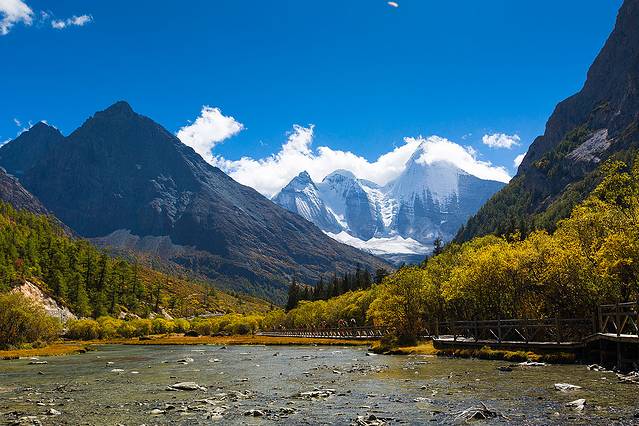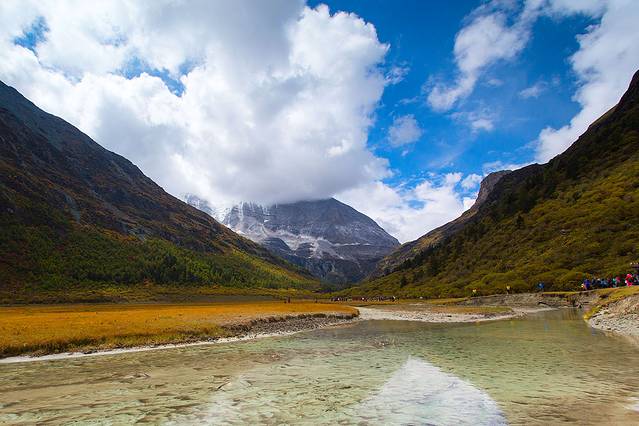 沿着河谷往上,雅拉雪山突然就出现在山谷中,惊艳无比。