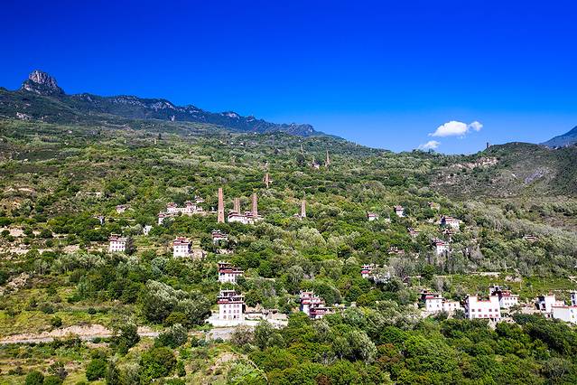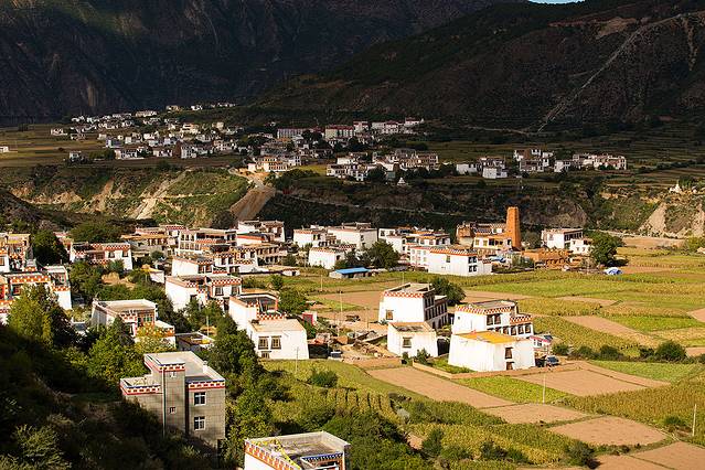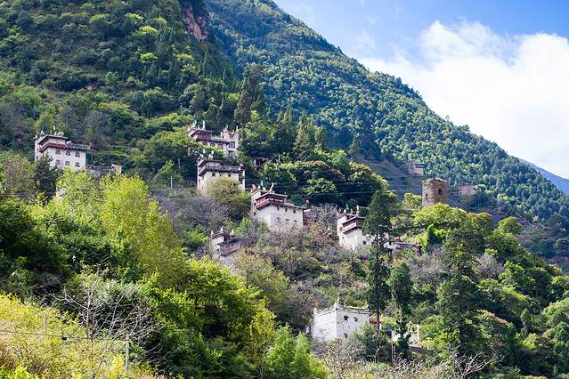 这边的藏寨,都是白色的,白藏寨在阳光下很漂亮。