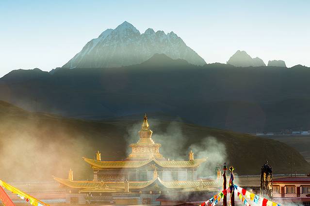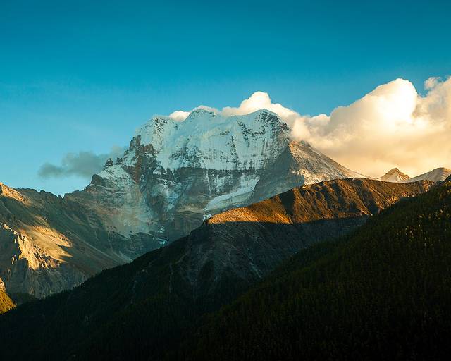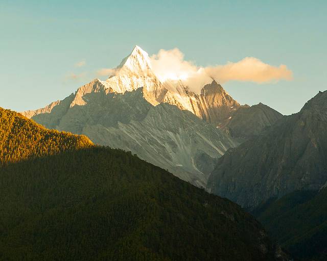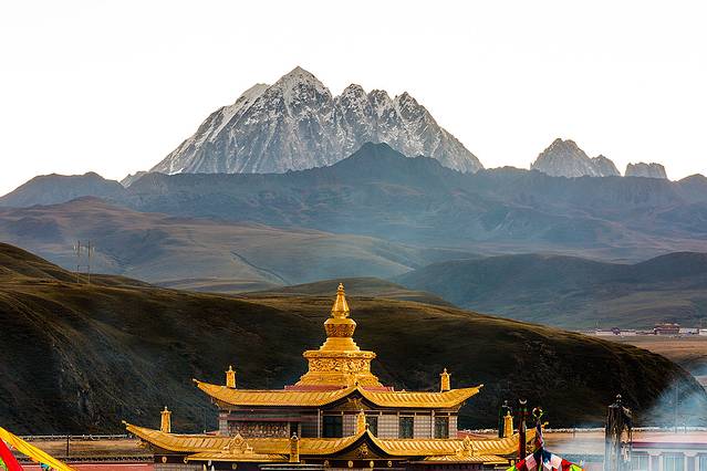 早晨,一早爬山拍雪山及木雅金塔。
