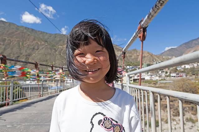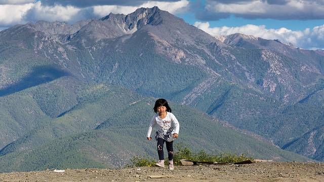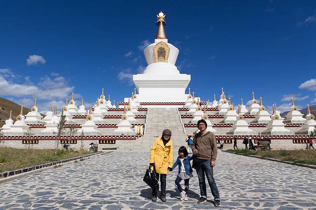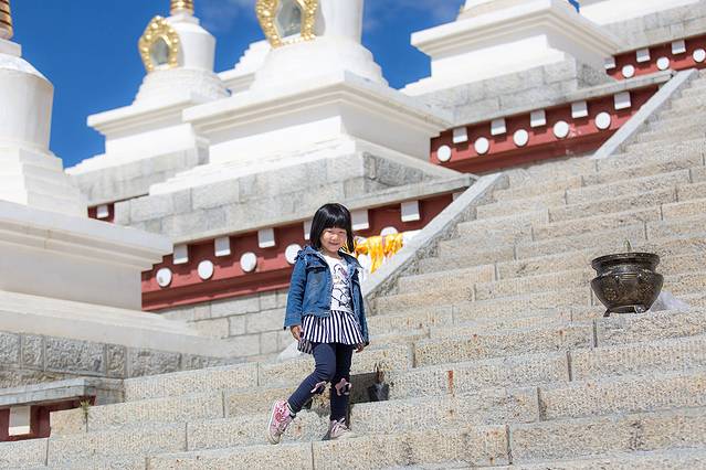 甜甜绕这白塔转经,玩得很开心,不停的跑。