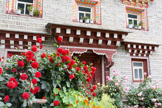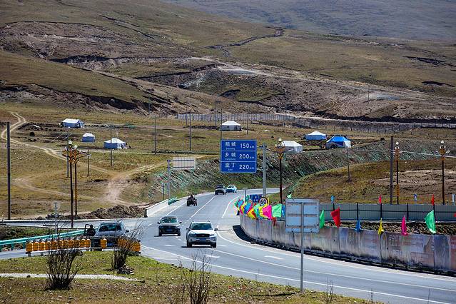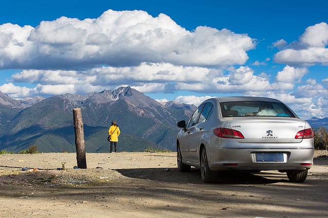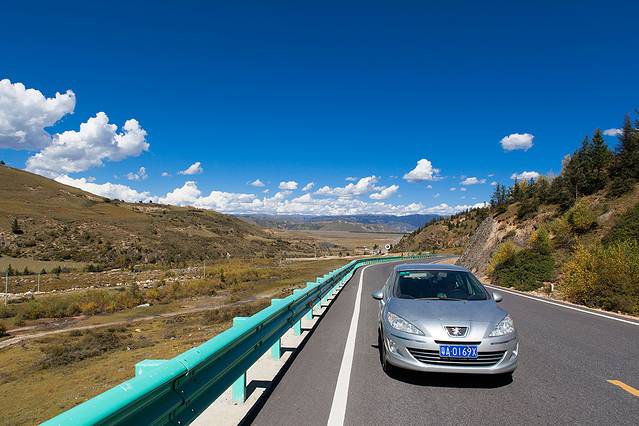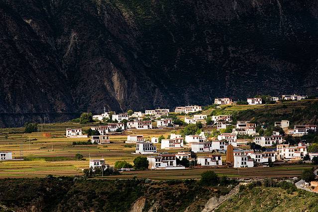 这地方拍白藏寨不错,就在乡城往得荣方向,道路编号(XV09),乡城去云南香格里拉有两条路,问了一下路上的跑车的,直达的S217道路最短200公里,但是要翻越大小雪山,全是砂石路;绕道得荣奔子栏路多一百公里,但是基本上是好路。