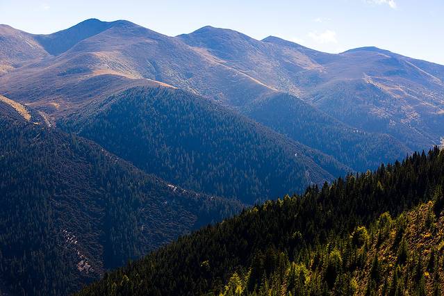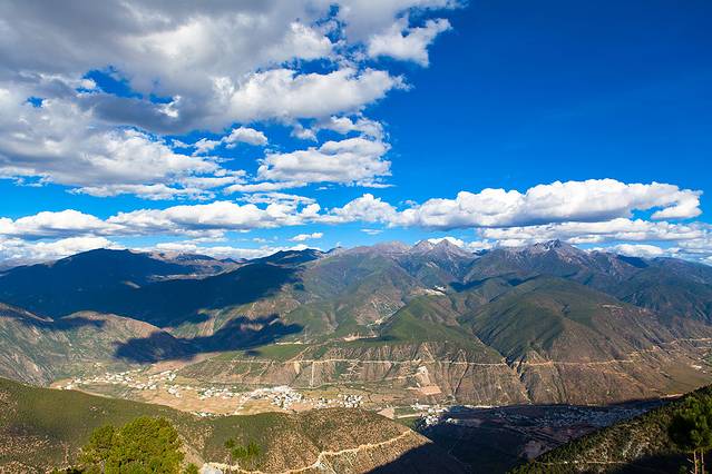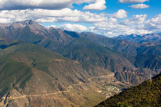 乡城往得荣,翻到山顶,远眺乡城。