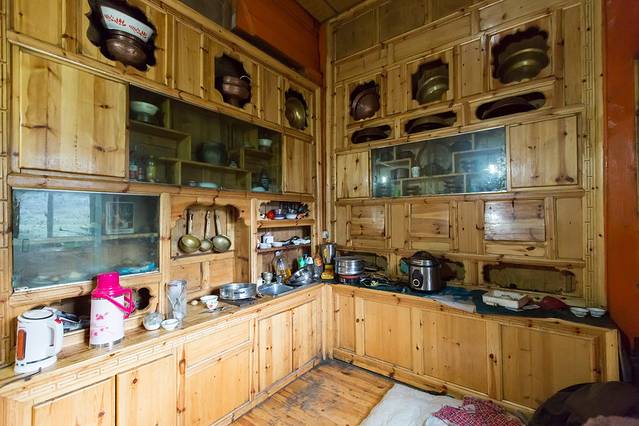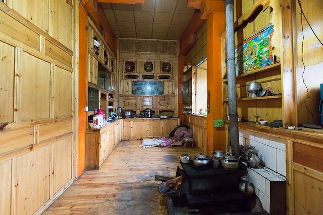但是,这里的藏民家外观漂亮,个个都是一栋栋别墅豪宅,内部基本上原生态。甚至房间隔墙都没有,就用彩条布一拉就算,而是都是房间在二楼,洗手间在一楼。要是半夜上厕所还得出来下他们又高又窄的楼梯摸黑上!