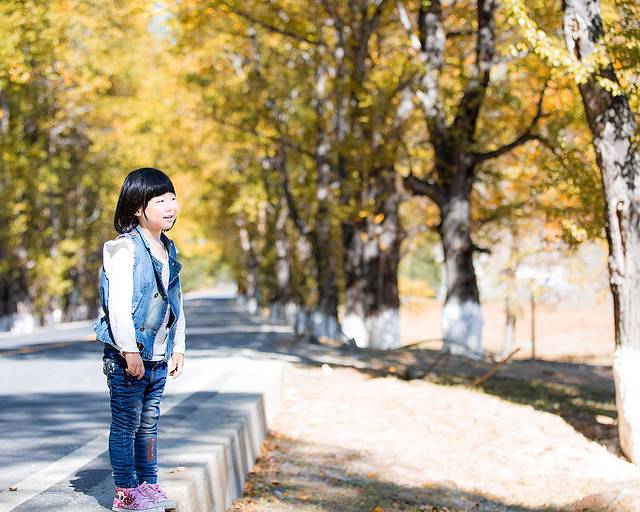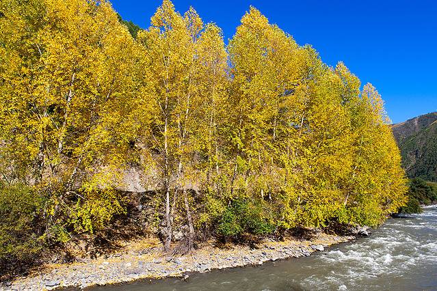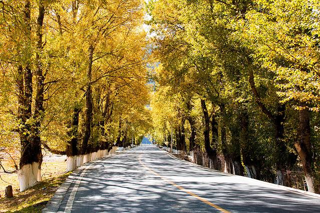国道两边的杨树,叶子黄了。