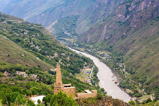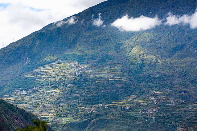 往甲居藏寨,可惜上午多云,没有光线,甲居藏寨便不出彩。