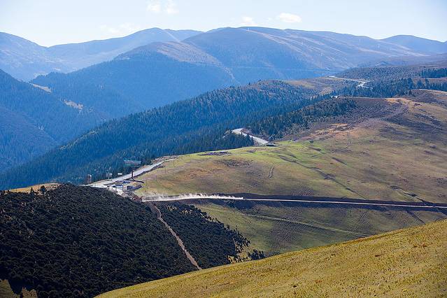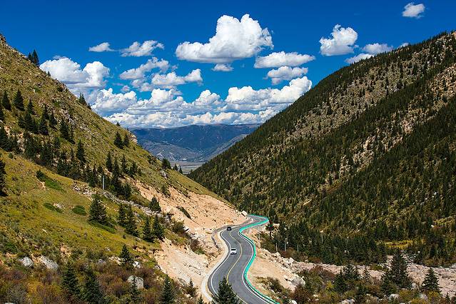 海子山下稻城路上,路况非常好,一不小心就超100了。一路上七八处交警人工放狗测速,记得一定不能超60