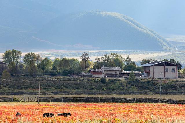 这里有个小山头,整个田园村落一览无遗,特别是夕阳西下的时候。往香格里拉方向,快到小中甸前五公里,过一座桥,左边有块空地,没建设,这个位置特别好。特别对于路边停车拍摄党来说。