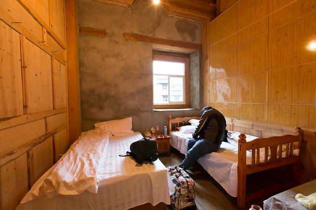 看了十几家,没错,看了十几家,找了两个小时,终于找到一家没有打破心理底线的藏民,至少洗手间和房间在同一楼层,墙壁是木板的。