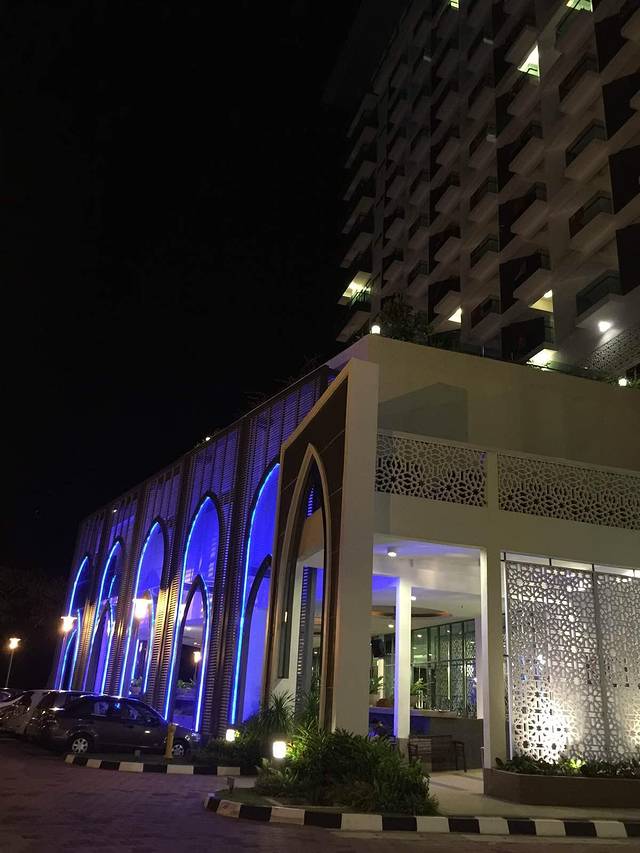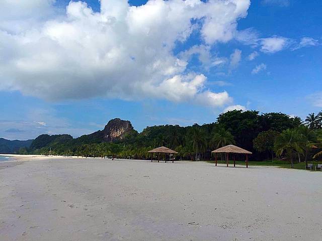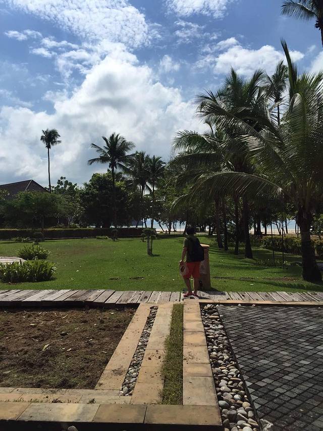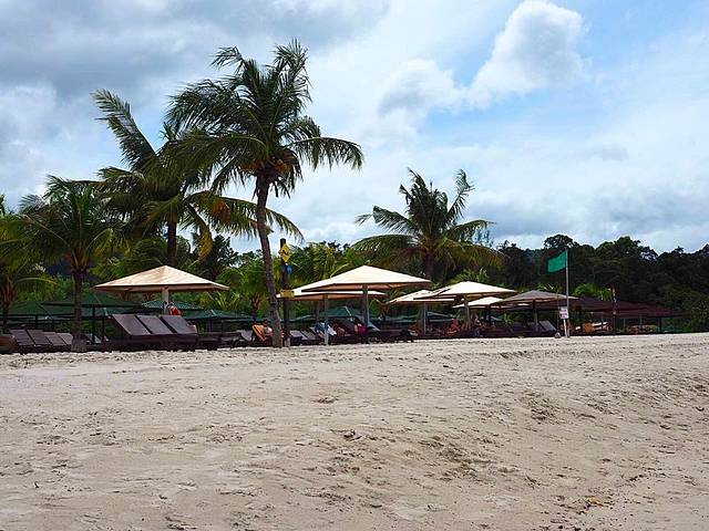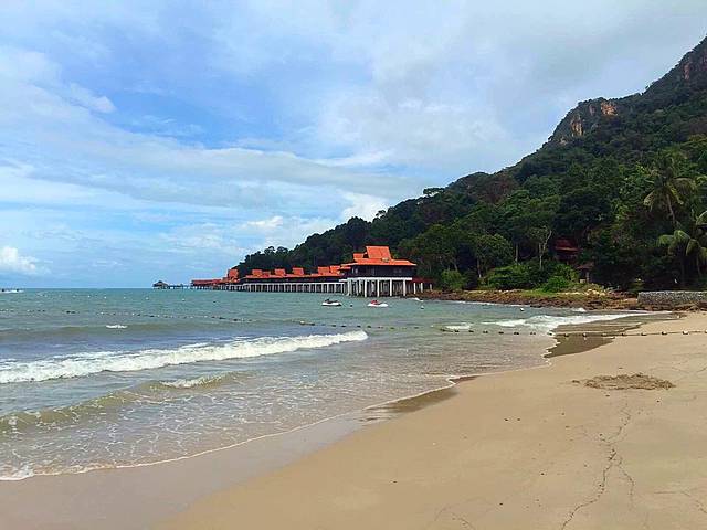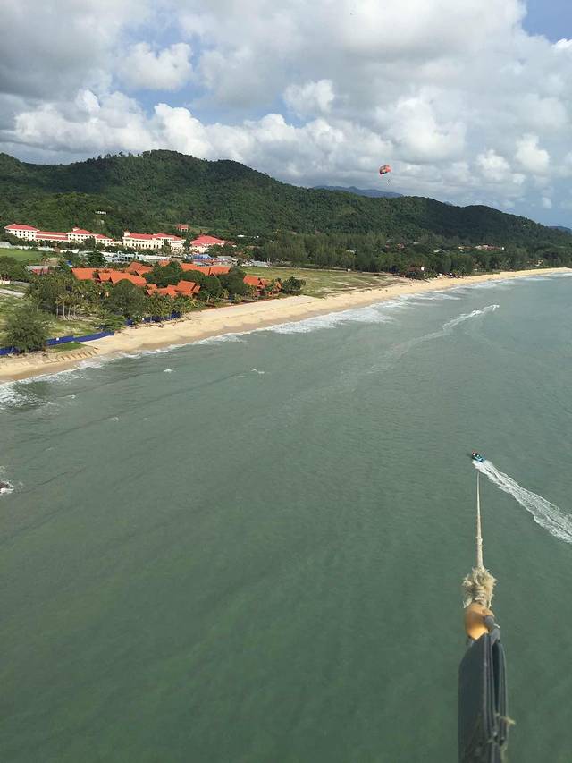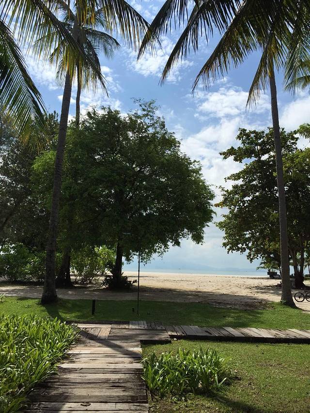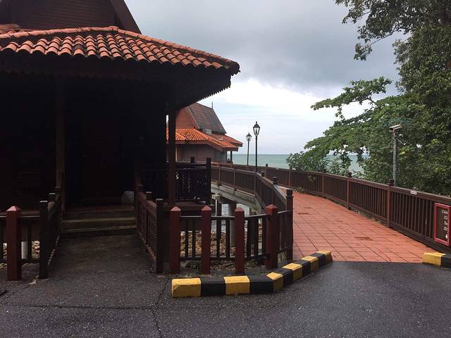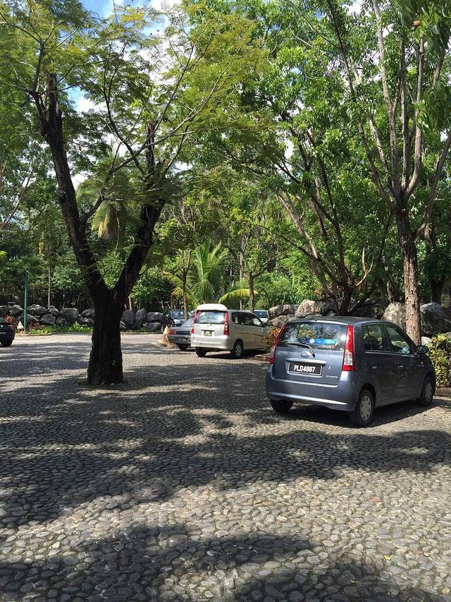 到啦,顺利开进去,顺利停在里面。还想着怎么没人来拦呢?就很庆幸的晃晃悠悠走进去,走到行人入口,这才知道原来还是有人看门嗒,说里面是酒店私人场所,外人不能进,从旁边走过去就有公共海滩了,请到那边…老公说算了别进了,咱就去旁边吧。我说不要,都专门来了,一定要进。我又去交涉,我们都来了,能否进去,工作人员就说,那就交30马币停车费(估计就是来的人太多,他们也变相的赚点“门票”),可以进去走走,但请不要去度假屋前面打扰住客,请尽量在接待大厅前面的海滩…好吧,管他,先能进去再说,哈哈…