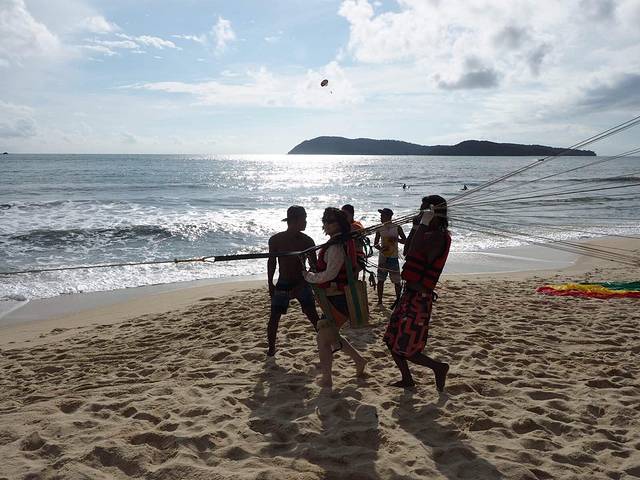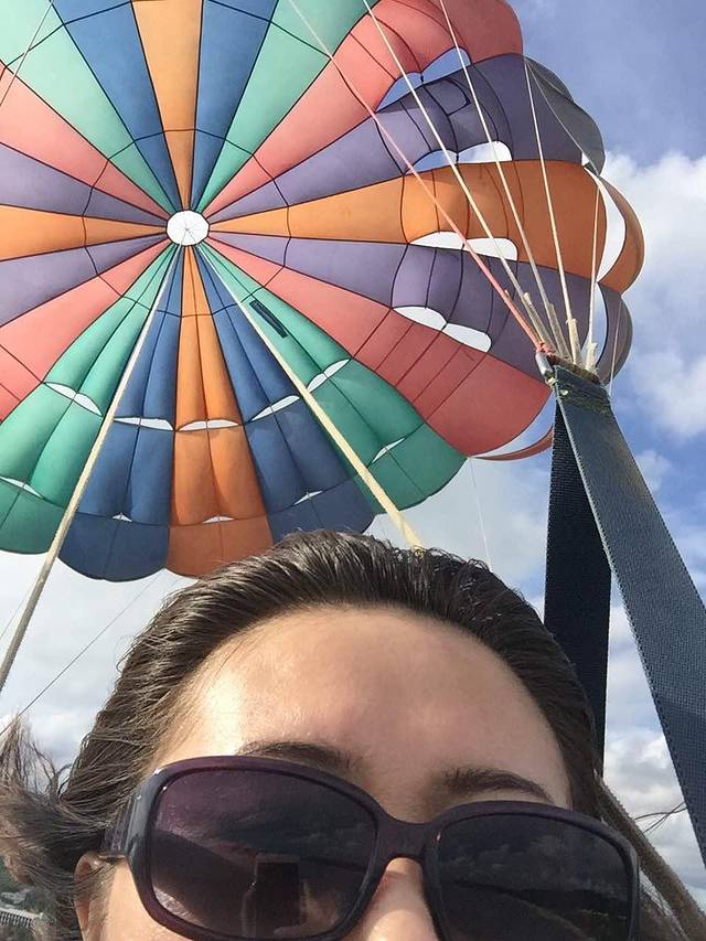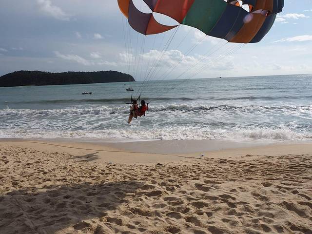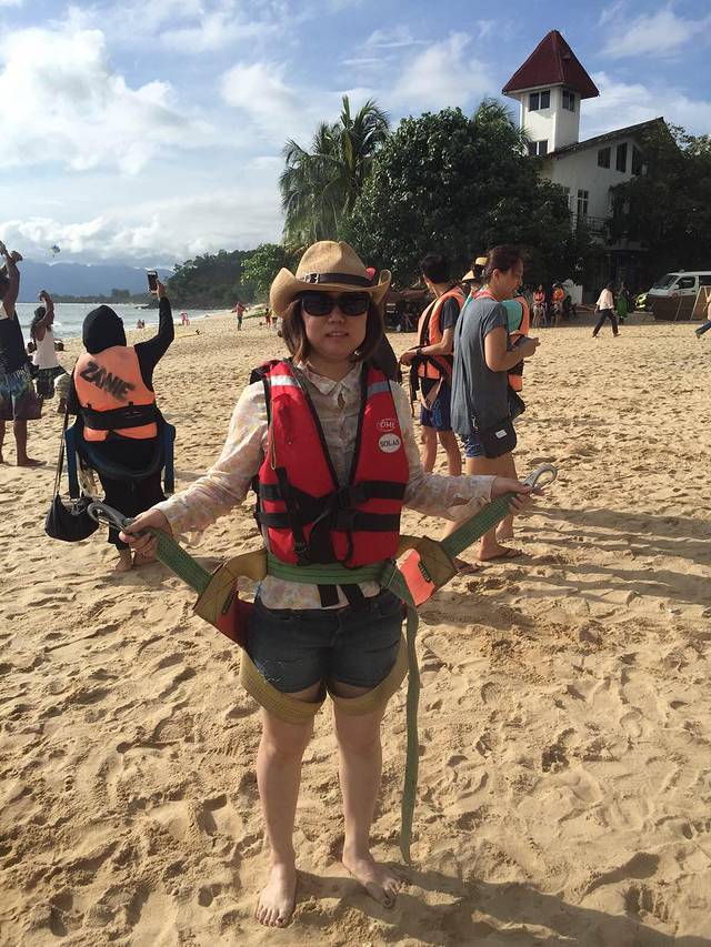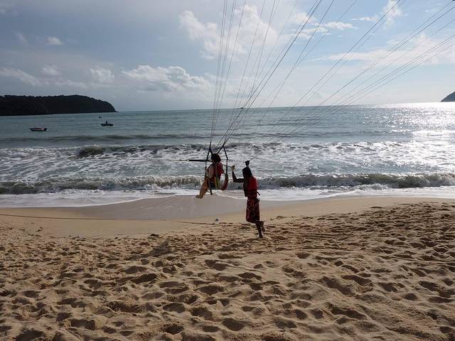 订好了就走进沙滩了~ 第一件事就是去玩儿滑翔伞,特别期待的一个项目^_^本来一直阴天的,要玩儿的时候就放晴,一阵暴晒。倒是好在拍照片挺美。排队等着的时候可是晒坏了~