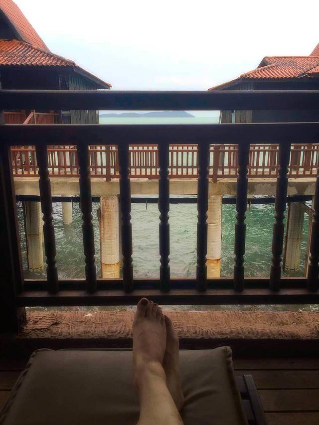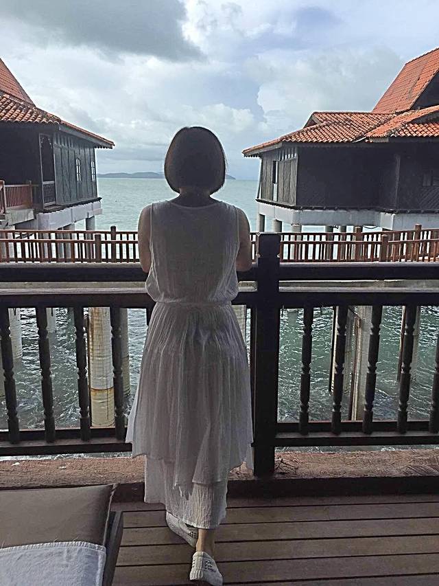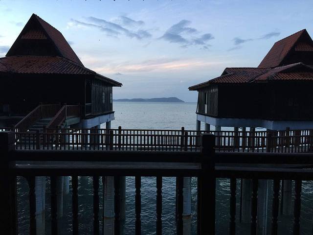 清晨在海浪声中醒来,推开阳台门一看,好美!昨晚天黑没看到,只可惜前面有两个水上屋挡住了点视野。隔壁的房子就没有被挡,我一直在想会是一样的价钱么?
