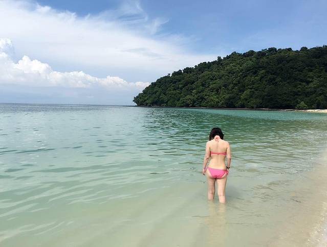 第一站,孕妇岛是兰卡威群岛中最大的一个岛,因为湖边的高山和突出的岩石轮廓就像一位仰卧着的孕妇而得名,孕妇湖Tasik Dayang Bunting则位于孕妇岛的西部,是一个湖水青绿,适合泛舟游泳的淡水湖