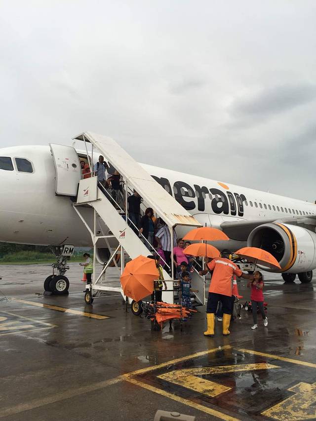 果不其然啊,下了灰机还在下着~每个人发一把伞,自己走到航站楼,也是醉了-_-#