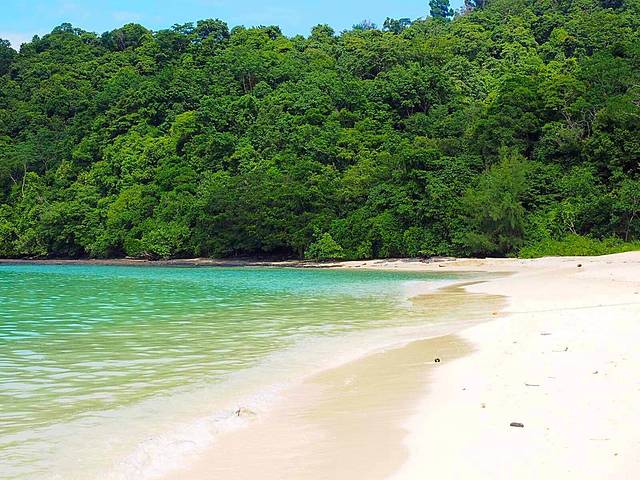 第二站,湿米岛又叫白沙岛,后者是由于沙呈白色而得名,前者是因为以前运送稻米的船只遇风浪避港湿米所致。 湿米岛有细白的沙滩和清澈的海水,是理想的海浴场。这里的基本设施齐全,还可进行多种水上活动。