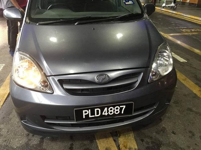 这就是我们租的破车。也被忽悠了,因为在窗口说好要白的,开过来的却是灰蓝,一想也无所谓了。就接受了~看在送车的马来小伙挺热情的份上:-)